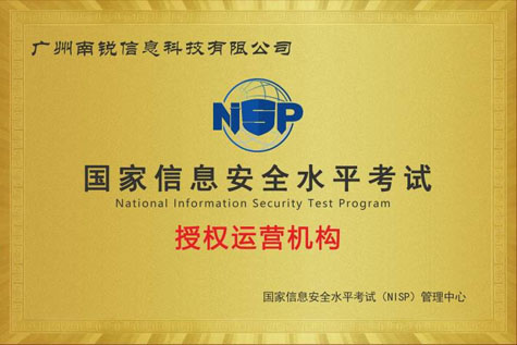 国家信息安全水平考试(National Information Security Test Program,简称NISP),是由中国信息安全测评中心实施培养国家网络空间安全人才的项目。广州南锐信息科技有限公司是国家信息安全水平考试华南授权运营中心。NISP认证分为一级和二级,证书由中国信息安全测评中心颁发,只有考取NISP一级证书才能考取NISP二级。NISP与CISP无缝对接,因为CISP报考需要工作经验,NISP填补了在校大学生无法考取CISP证书的空白,被称为“校园版CISP”。